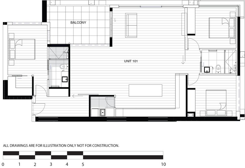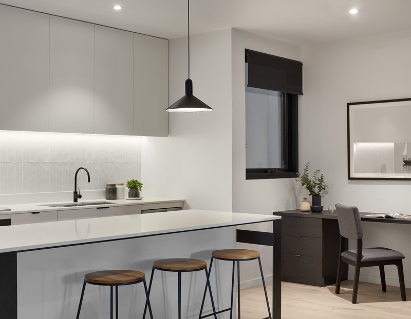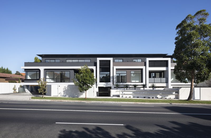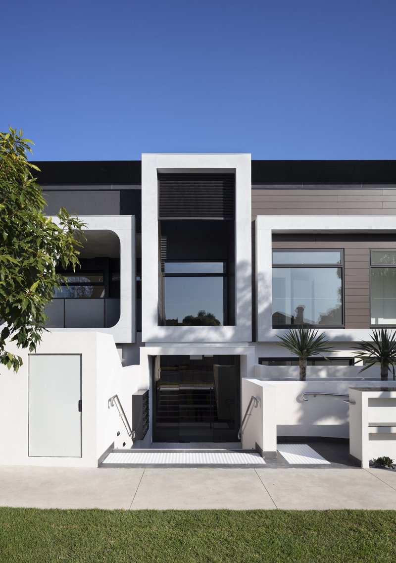 En Vue é uma seleção exclusiva de vinte e dois apartamentos de luxo, com opções de um, dois e três quartos, situada no coração de Bayside, Sandringham. Este empreendimento é um verdadeiro marco de interiores belíssimos e detalhes requintados, com cada residência exibindo de forma impressionante a mais recente elegância contemporânea, em harmonia com acabamentos e fittings de alto padrão. En Vue combina um caráter único e uma estética moderna, resultando em um edifício que se destaca na suburbana Bayside. Todos os apartamentos foram projetados para garantir uma disposição em plano aberto, integrando cozinha, sala e área de jantar, sem comprometer os espaços privados individuais. Cada apartamento proporciona um ambiente contemporâneo e suavizado, ideal para refletir e relaxar. A concepção de En Vue foi guiada por duas prioridades fundamentais: individualidade e luxo. Cada unidade conta com uma abundância de luz natural, preservando ao mesmo tempo uma sensação duradoura de privacidade e solitude. En Vue respeita as propriedades vizinhas ao se posicionar de forma discreta na paisagem urbana, reduzindo o impacto visual geral dos edifícios e impondo menos sobre o ambiente local. Essa abordagem também permitiu que os apartamentos no nível do solo dispusessem de áreas externas generosas, varandas no primeiro andar e terraços privados no segundo andar. A proximidade com a praia de Sandringham foi cuidadosamente considerada, visando maximizar as vistas deslumbrantes, que são um lembrete constante da proximidade da baía. A fachada moderna do empreendimento foi projetada como uma unidade coesa, em vez de segmentar e destacar cada apartamento individualmente. Isso acrescenta ao charme de En Vue, pois sua fachada integrada promove um estilo de vida mais interconectado com a comunidade mais ampla de Sandringham. Uma paleta de cores clara, composta por revestimento em madeira e concreto branco, contribui para a unificação da elevação da rua, ao mesmo tempo que enriquece a vitalidade da área. A dificuldade em distinguir facilmente entre os apartamentos na fachada diminui o impacto visual na rua, ao combinar com a paleta de cores claras, predominantemente composta por concreto branco e revestimento em madeira.